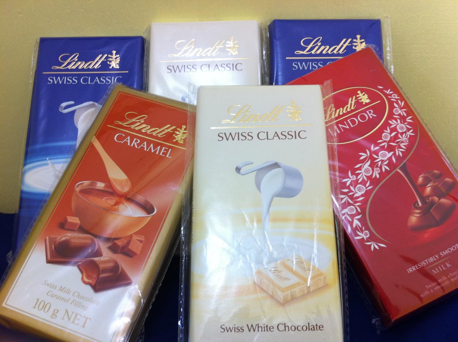 lint 6 bars. 2 lindt Swiss white classic. 2 lindt swiss classic 1 lindt lindor 1 lindt caramel