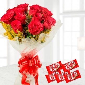 12 Red Roses Bunch - 5 Nestle KitKatNo Product Detail Available |