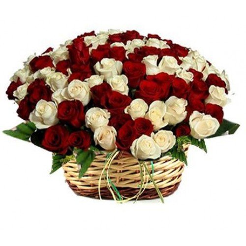 mother4You48 Red and white Roses one sided Basket arrangement. |